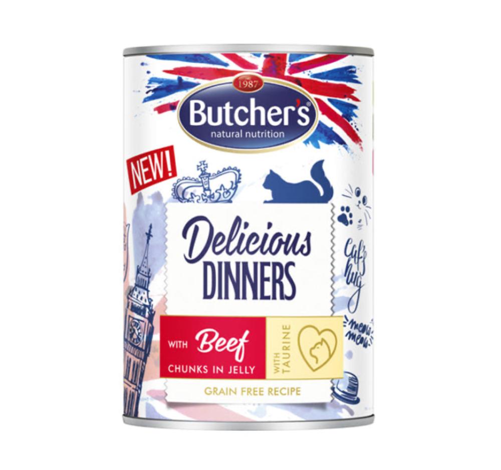 بوتشرز العشاء اللذيذ قطع الحم البقري في جيلي طعام رطب للقطط 400 جرام