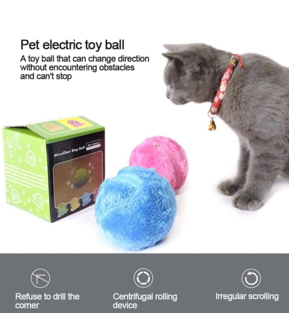 عند تشغيل الزر تعمل الكره على خلق حركه سريعه من ما يزيد من حماس القطط والنشاط في المنزل
